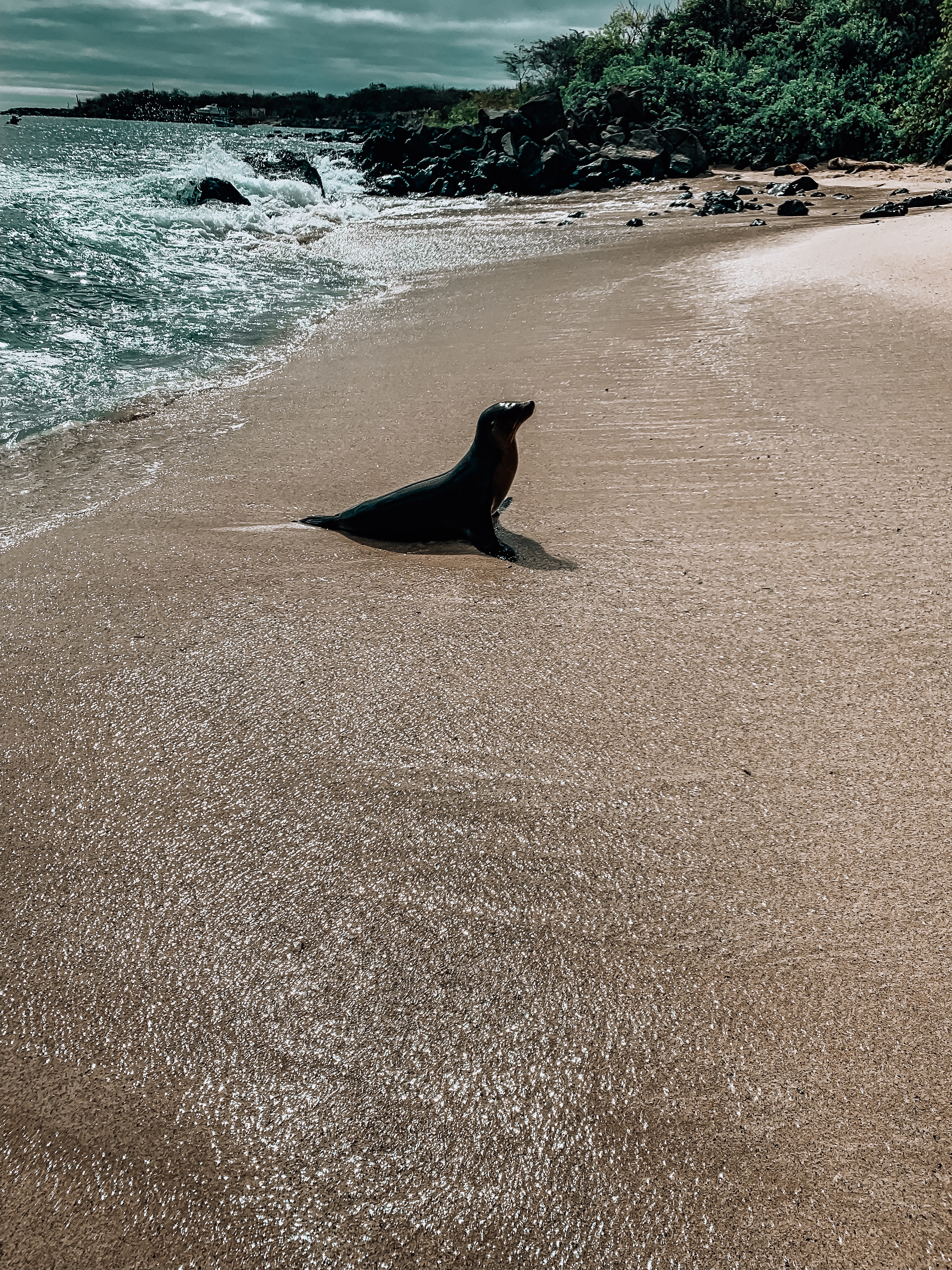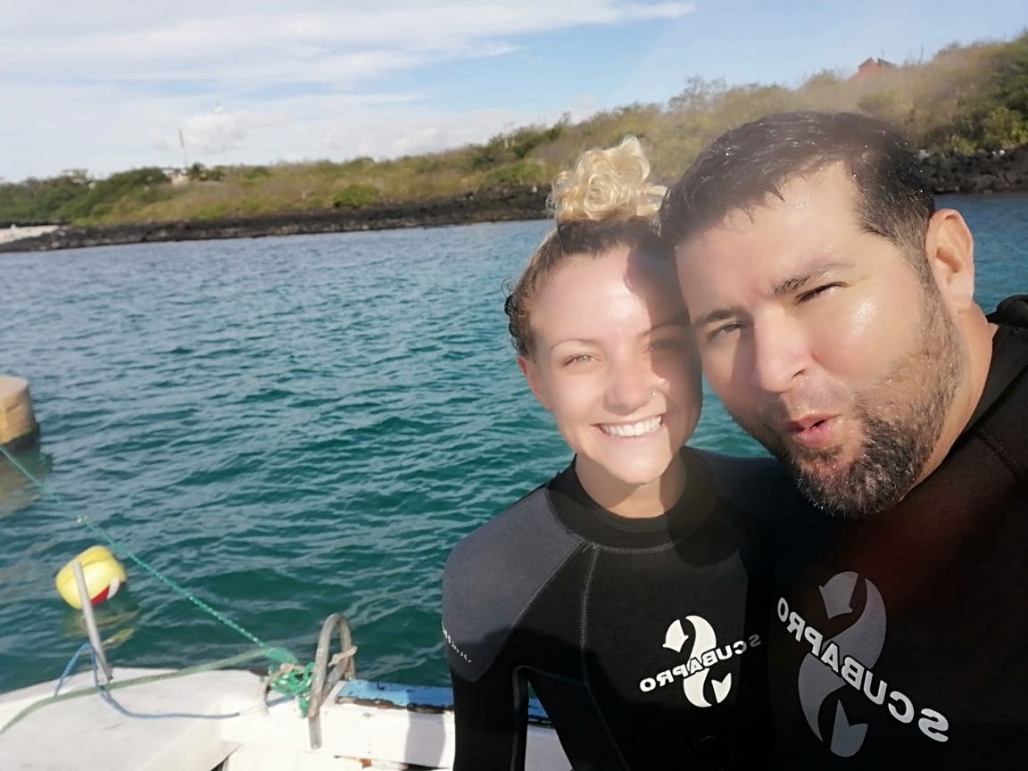 It was so crazy being on the beaches in Galapagos because it was practically impossible to go to a beach that wasn’t filled with sea lions! The beach right across from our university, Playa Mann, had dozens of sea lions during the day coming up to greet you…or nibble on your toes. For two weeks, we had classes everyday (which sucked) but we were able to visit the beaches almost every day and take field trips to visit El Junco, a crater lagoon, Leon Dormido (Kicker Rock), a hot spot for snorkeling and scuba diving, Puerto Chino, an absolutely gorgeous beach in the National Park, La Loberia, a beach filled with marine iguanas and gorgeous views, a breeding site for Galapagos giant tortoises and several other magical locations. AND I CAN’T FORGET TO MENTION THE BEST PART! My host family is good friends with one of the most experienced divers in the Galapagos. I don’t have my scuba diving certification, but they do something called Discovery where the dive masters take you out diving in shallow waters and give you a chance to discover the magic of diving. I am still blown away by the fact that my first time scuba diving was in the Galapagos Islands!! Even more incentive to get my certification.